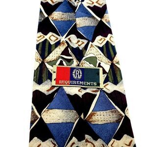 Requirements Polyester Tie Blue Abstract Reddish Brown
