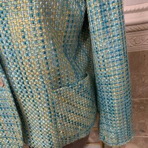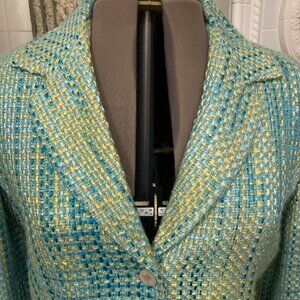 Requirements. Size 16. Textured Nubby Fuzzy Acrylic. Lined. Long Sleeve. Button Up. Jacket. Pockets. Center back 25.5". Sleeve 23.8". Bust 23/46". (Armpit to armpit X2 - Taken with tailor's tape so could have a bit of play. Please add your preferred amount of ease.) Very good pre-loved condition. No damage that I can see.