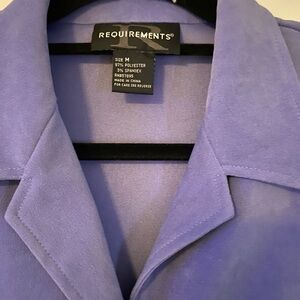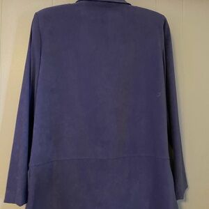 Chic purple jacket with a classic collar. Perfect for any occasion. Suede like texture adds style!
