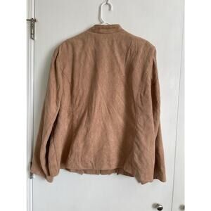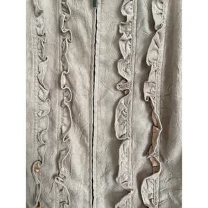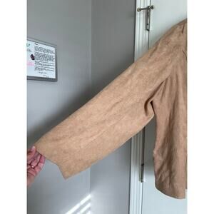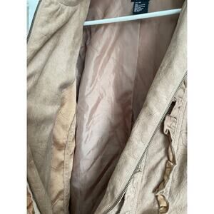 Requirements Woman tan faux suede jacket lined ruffled zipper Size 3X
