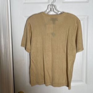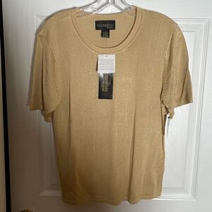 Pull over short sleeves round neckline stretchy material 52% rayon 21% acrylic and 17% cotton NWT