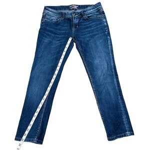 Rerock For Express Capri Jeans Women Size 6 Blue Rhinestones Embellished Stretch