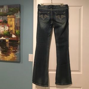 These are super cute! I tried them on a few times, but I never wore them. Rerock for Express boot cut jeans size 6 US, size 28 EUR.