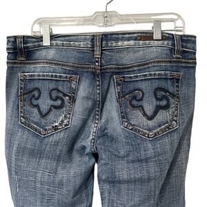 Distressed Rerock for Express Boot Cut jeans Women's Size 12 Short. There's a little bit of wear on leg hem.