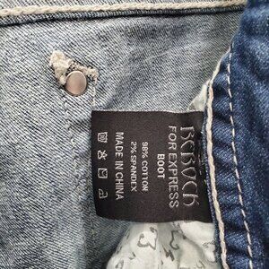 Rerock for Express Women's Medium Wash Low Rise Embellished Bootcut Jeans Sz 29