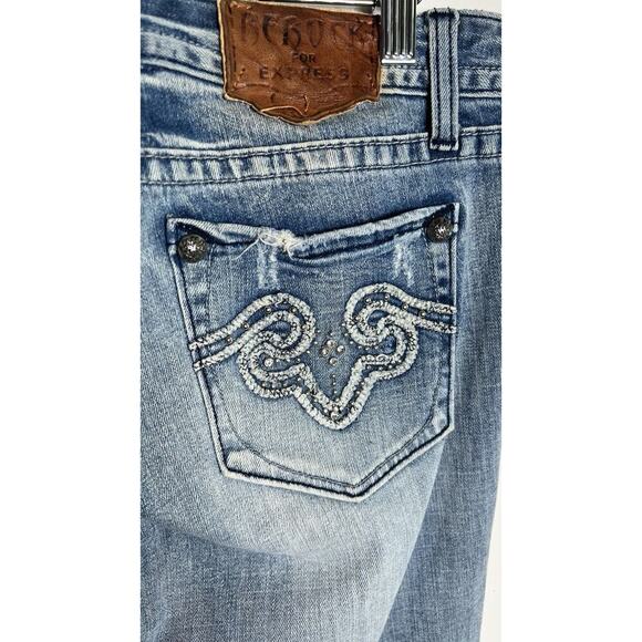 Rerock for Express Womens Size 12 Distressed Low Rise Festival Flared Jeans