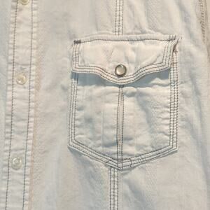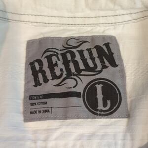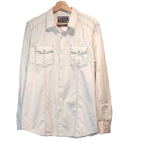 Rerun Mens White Button Front Shirt Roll Tab Sleeves Pearl Snap Large Western
