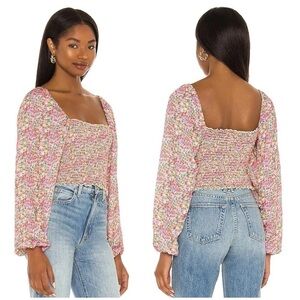Resa Chevy Floral Print Ruched Ballon Sleeve Top in Pink Charleston