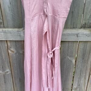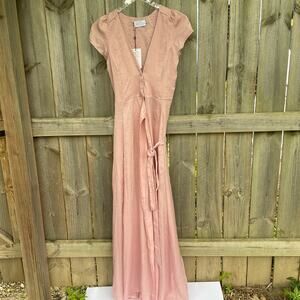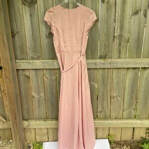 Resa Lindsay Wrap Dress Plunge V-Neck Wedding Bridesmaid Satin Pink Small NWT