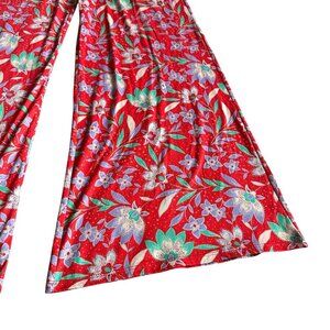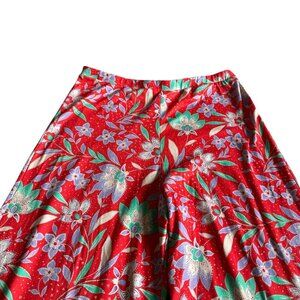 Resa Red Colorful Floral Print Pants Pull-On Stretch Wide Leg Size Small Women's