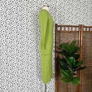 Resa | Revolve Lime Green Sparkle Knit Button Long Sleeve Midi Sweater Dress XS
