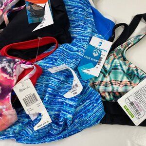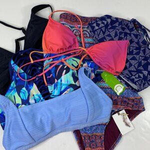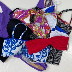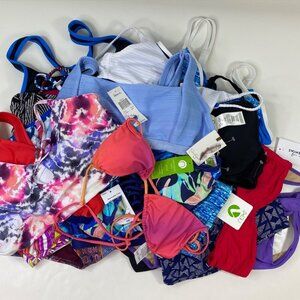 Perfect for resellers! This mixed swimwear lot includes 17 pieces of women’s swimsuits in a variety of sizes, styles and colors.