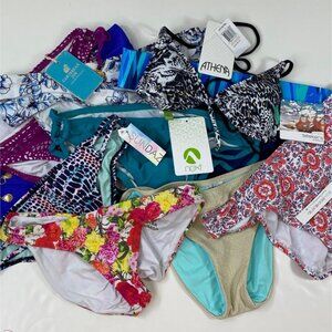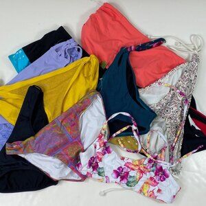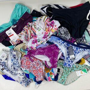 Dive into the sea of style with this hilarious mishmash of bikini bottoms. Sizes & colors galore—because who doesn't love a little swimsuit roulette? Perfect for resellers! This mixed swimwear lot includes 28 pieces of women’s swimsuits in a variety of sizes, styles and colors.