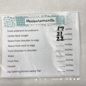Measurements in photos. To ensure a good fit, it is recommended to compare these measurements with a similar garment that you own.