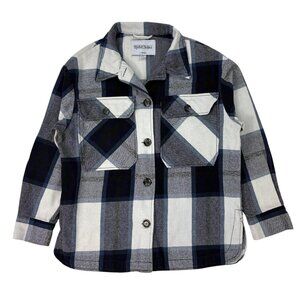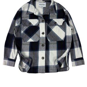 Reserve Fairfax Women’s Plaid Flannel Shacket Blue Gray Button Up Size Small