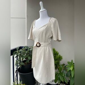 Reserved Mini Belted Dress with Sweetheart Neckline and Puff Sleeves US 8