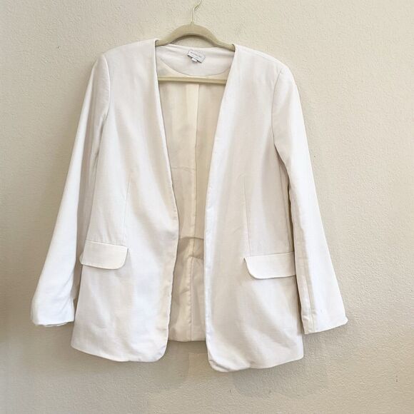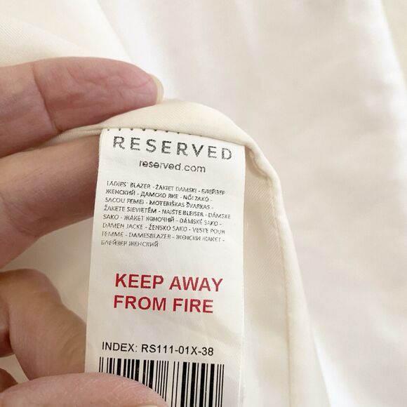 Reserved Open Front Blazer Ivory Size UK 10 EU38 Cotton Blend Lined Career