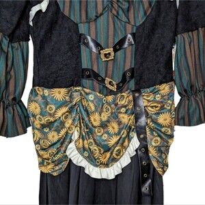 Women's Adult Steampunk Costume, Size Large 10/ 12. Who knew that wearing a dress could make such a statement? With this Emerald Steampunk Costume, you'll be representing a new and inventive way to set trends. Let's go back in time and get this show on the road! Includes: Dress with adjustable skirt Material: Polyester