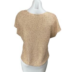 Reserved Women's Tan Sequin Knit Short Sleeve Deep V-Neck Sweater Top Size M