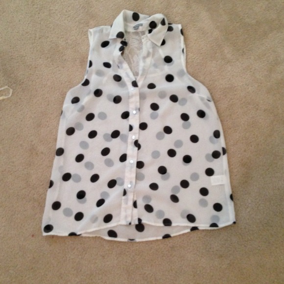 Black and white sleeveless blouse with lace back. Perfect for work or a night out on the town. Only worn once!