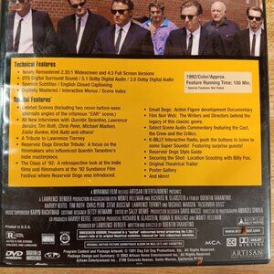 The "Reservoir Dogs" 1992 DVD is a special edition release directed by Quentin Tarantino and starring Tim Roth, Harvey Keitel, and Michael Madsen. This 2-disc set includes both wide and full-screen formats, with bonus features such as commentary, retrospective interviews, deleted scenes, and behind-the-scenes featurettes. The crime thriller film is known for its intense storyline and memorable performances from the ensemble cast, making it a must-have for fans of Tarantino's work and the genre.