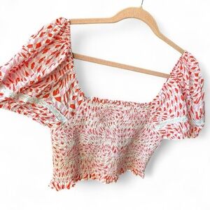 Reset- Pink & Red Smocked Peasant Crop Top | Boho Vibes | Size M ❤️🌸