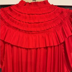 Chic red dress with layered ruffles. Ideal for any event. NWOT