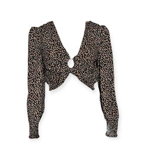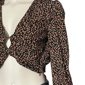 Reset Womens Cropped Ditsy Floral Long Sleeve Bouse Size Mediium