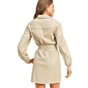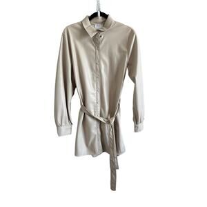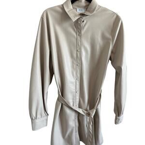 Reset Women's Medium Cream Faux Leather Button Down Tie Waist Dress