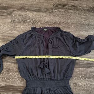 Introducing the Jamie Dress, a luxurious and sophisticated piece designed to make a statement. Its elegant V-neck and ruffle band collar add a touch of femininity, while the ruched details and smocked waist create a flattering silhouette. Made from a silky, solid-color fabric, this mini dress exudes exclusivity and refinement. Elevate your wardrobe with the Jamie Dress.