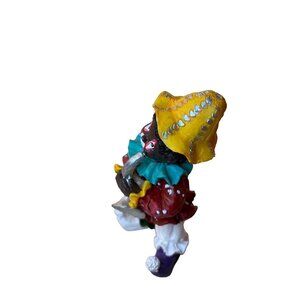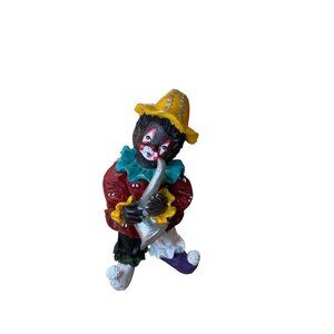 Resin Clown Figurine Brown Skin Playing Horn Musician 3.5"