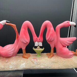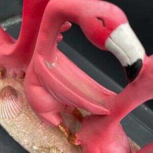 No chips or cracks. Does have a few spots of missing pink on the flamingos. See photos.