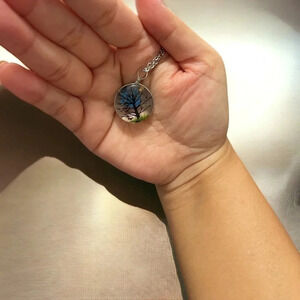 Please note: pendant design differs per pendant and may have slightly different design, more or less full tree leaves, different placement of butterflies / background design, etc.