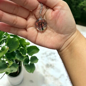 Resin Flower Pressed & Tree Circle Pendant Charm Stainless Steel Necklace