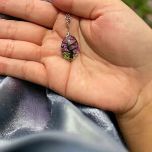 Resin Flower Pressed & Tree Oval Pendant Charm Stainless Steel Necklace