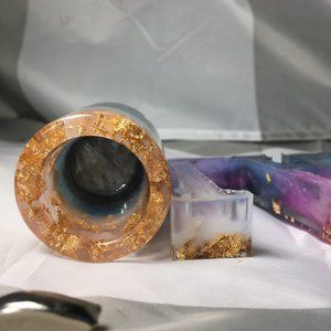 OR Purple Blue Gold Resin Laugh Sign with 2 matching Votive Candle Holders (A)