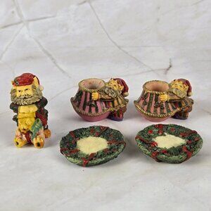 resin tea set Christmas Santa elves display only collectible collection collector decor decoration gift gifts birthday holiday
