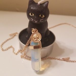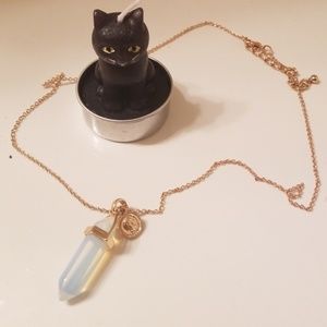 Smooth cut crystal. Is a blueish pink hue with a little face icon. Super cute and sturdy. Lightish weight. Never worn.