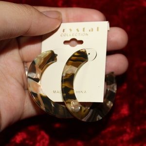 2-Cream/Brown Resin Open Hoop Earring