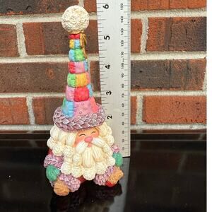 Resin Whimsical Santa Gnome with Patchwork Hat