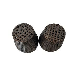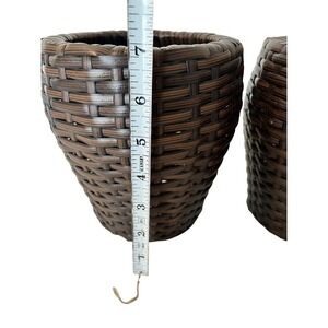 Resin Wicker Weave Flower Pot Set of 2 Small Planters 6” Brown Rattan.