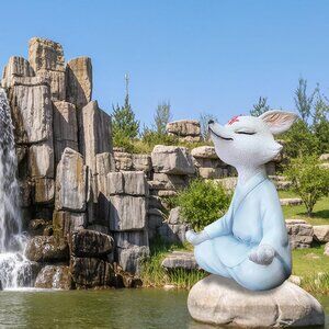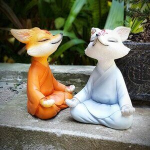 Resin Zen Meditating Buddha Fox Yoga Figurine Decor for Patio Garden Tabletop