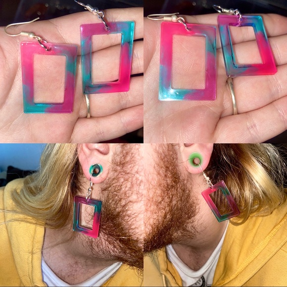 Earrings made with UV resin, and alcohol ink. Jewelry is nickel free and hypoallergenic.