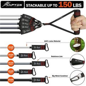 🧿💪【perfect Workout Equipment】The resistance bands come with 5 different resistance level 10lbs, 20lbs, 30lbs, 40lbs and 50lbs in 5 different colors. You can use the bands independently or in any combination with a maximum resistance level of 150lbs.Whether you're just starting out fitness or working out professionally, they're the perfect home workout equipment.