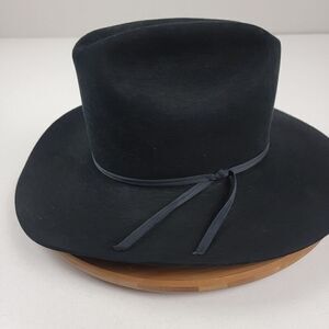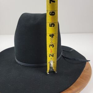 The hat has a solid pattern and comes in black color, with a vintage style that adds a touch of 90s Western theme. It's a self-conforming hat, ensuring a comfortable and secure fit for the wearer. The hat is made in the United States and is a great addition to any collection.