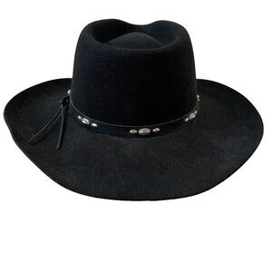 Resistol Hondo Cowboy Hat Size 7 1/2 2X Black Wool Silver Conchos Made In Texas