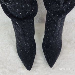 Resolve Sparkling Black Rhinestone High Heel Slouch Calf Boots New Years Bling