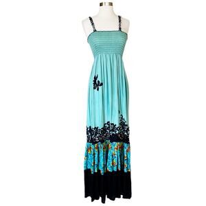 Resort Dress by T. ZOVICH Maxi Dress Mixed Media Green Floral V-Neck Spaguetti Large