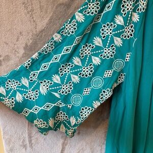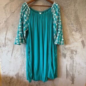 Resort Wear Vacation Sundress Raglan Sleeves Embroidered Stretch Dress Sz 18/20W
