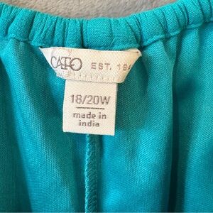 This Cato sundress in teal is perfect for casual or resort wear. It features a pleated design with a scoop neckline and 3/4 raglan sleeves, offering a relaxed and stylish silhouette.